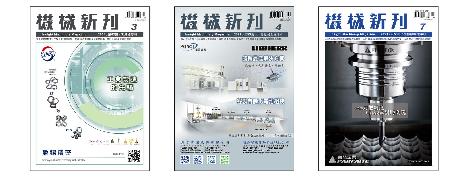 As the leading machinery media in Taiwan, Insight Machinery Magazine is a must-read for professionals in the Smart Manufacture, Smart Machine, Machine Tool, Cutting Tool, Transmission Components, Molding, Plastic Processing Machine, Smart Automation, Electrical Motor, Control System, Pneumatic Hydraulic, Fluid Machinery, Bearing and Gears.